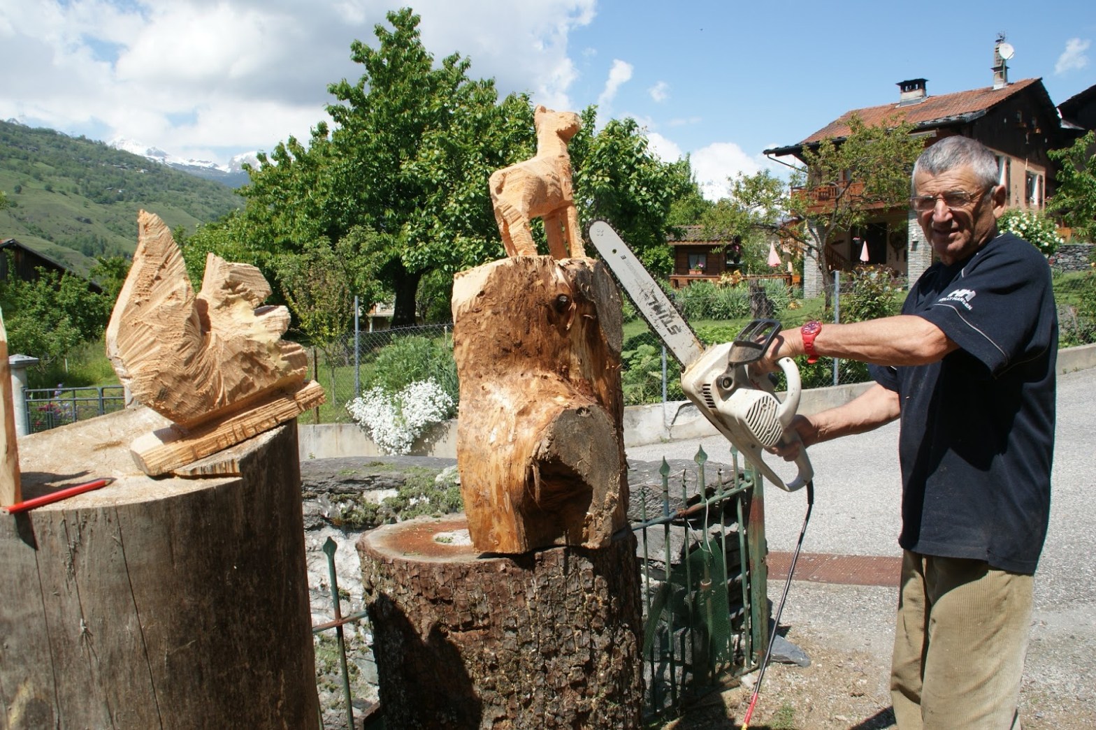 Un peu en amont de la place principale de Landry, sur le chemin de l’ancienne mairie, l’atelier de sculpture de Roland Bertholin s’ouvre sur l’univers artistique d’un passionné au caractère enjoué. Une fois la grille passée, une famille de marmottes sculptées accueille le public et l’invite à visiter le chalet d’exposition où sont présentées toutes ses sculptures. Animaux et personnages subliment les essences d’arole, de pin cembro, de noyer, de pommier, de pin, de douglas, de mélèze comme une sarabande de parfums de la forêt. Des créations à découvrir et à offrir comme souvenir 😉