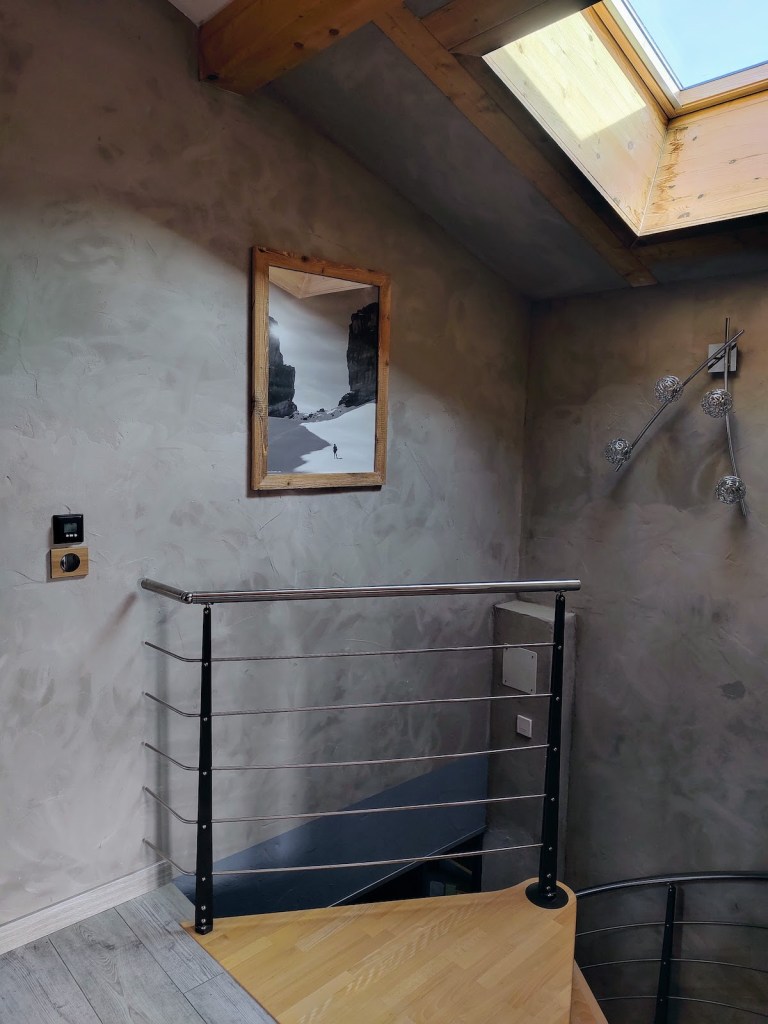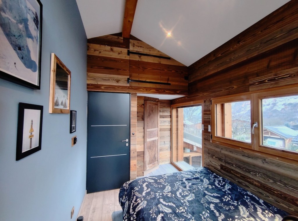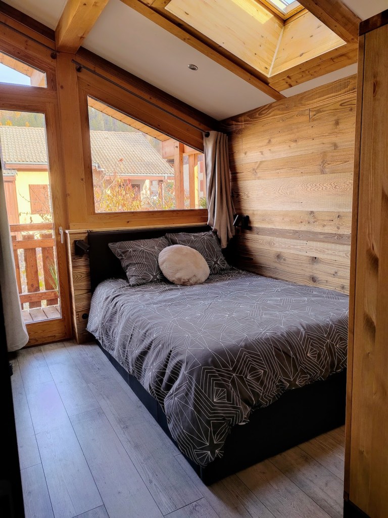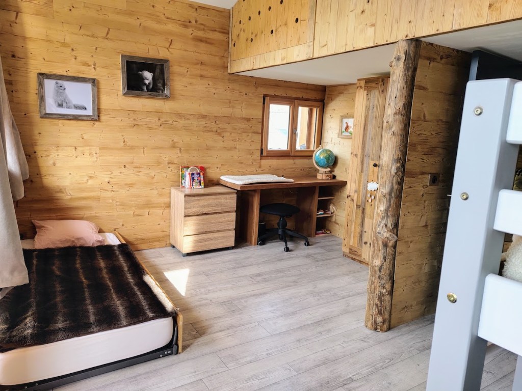 A l’étage, un grand dortoir pour les enfants, avec balcon. Possible en deux ou trois couchages.