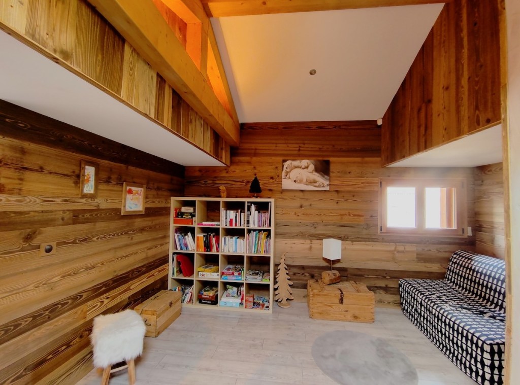 Espace bibliothèque, jeux, avec un canapé clic-clac (2 personnes)